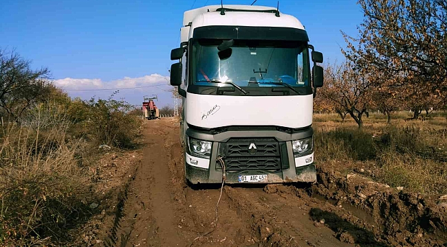 Çamura batan kamyonu kurtarmaya giden vinçte çamura battı