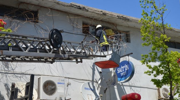 14 Kasım Caddesi üzerinde, meyve pazarının bulunduğu yerde, bir binanın çatısında mahsur kalan kediyi vatandaşlar sesinden fark etti.