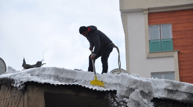 Aylardır etkili olan kar yağışının ardından çatılarda biriken karların temizliği vatandaşlara da ekmek kapısı oluyor.