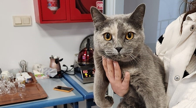 Günlerdir çatıda olduğu değerlendirilen kediye personeller tarafından kedi maması ve süt verilirken kedi daha sonra İl Müdürlüğü kompleksinin bahçesine bırakıldı.