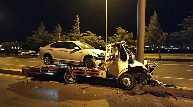 Kahramanmaraş’ta otomobil taşıyan çekinin yönlendirme levhasının direğine çarptığı kazada sürücü hayatını kaybetti.