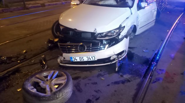 Cevizlibağ'da otomobil tramvaya çarptı: 2 yaralı