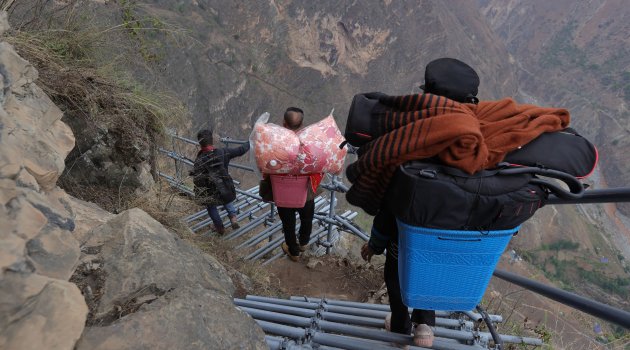 Çin’in Siçuan bölgesinde bulunan 800 metre yüksekliğindeki bir uçurumun yamacında bulunan Atulie'er köyü tahliye edildi. Köyde bulunan 84 hane “yoksullukla mücadele” kampanyası kapsamında tahliye edilerek, Jaocue kasabasında inşa edilen apartmanlara yerleştirildi. Köy sakinleri evlerine ulaşabilmek amacı ile her gün 800 metre yüksekliğinde binlerce basamaktan oluşan çelik merdivenleri tırmanmak zorunda kalıyordu. Atulie'er köyü ayrıca “Uçurum köyü” olarak da biliniyordu.