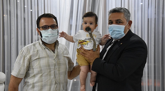 MTSO Başkanı Oğuzhan Ata Sadıkoğlu, SMA tip 1 hastası 6 aylık Eyüp Çınar’ın ailesini evlerinde ziyaret etti.