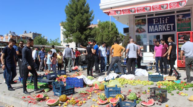 Hüseyin Nasrullah Çelik’i vücudunun 6 yerinden bıçaklayarak Kahta ilçesi Boğazkaya köyü yakınlarındaki tarlaya attığı iddia edilen ve Antalya’da yakalanan cinayet zanlısı Murat Ç.’nin çalıştığı babasına ait iş yerini, mahalle sakinleri bastı. İş yerinin kapısı kilitliyken dışarıda bulunan meyve sebzeleri yola savuran ve Murat Ç.’ye tepki gösteren öfkeli kalabalık, taşlarla iş yerinin camını kırdı. Atılan taşlardan 1 polis memuru yaralandı.