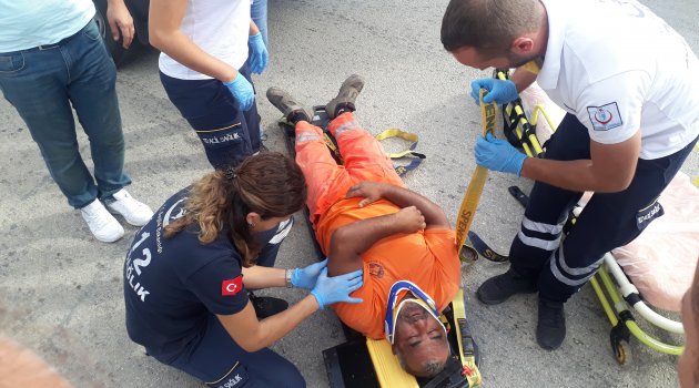 Çöp kamyonundan düşen temizlik görevlisi yaralandı