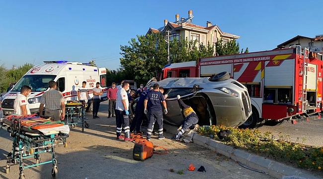 Kazada otomobil sürücüsü Ayşe Kuş ile salatalık tarlasında çalışmaya giden otomobildeki H.A., Z.Y. ve D.K. yaralandı.