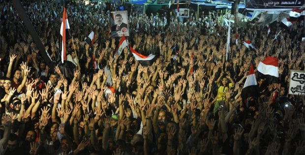 Katliamdan bir kaç saat önce Rabiatul Adeviyye Meydanı'nı dolduran onbinlerce kişi elleriyle "dört" işareti yaparak mesajlarını dünyaya duyurmaya çalışıtı.