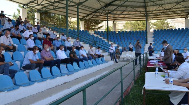 Kaymakam Malik Çalışır başkanlığında Darende Spor Kompleksi Güreş sahasında yapılan, muhtarlar toplantısında pandemi salgını konuları ele alındı.