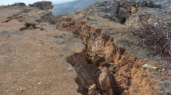 Malatya'nın Darende ilçesinde 6 Şubat günü yaşanan depremler sonrası ortaya çıkan dev yarıklar, depremin büyüklüğünü göz önüne seriyor.