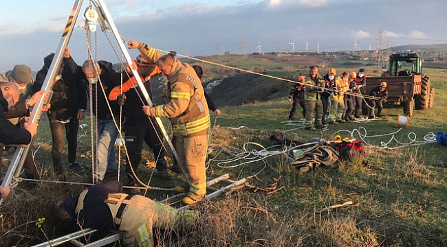 Çatalca İnceğiz Mağaralarının üst kısmında bulunan tepede iddiaya göre define arayan 5 arkadaştan biri 30 metrelik kuyuya düştü. AFAD, İtfaiye ve sağlık ekiplerinin hummalı çalışması ile ip yardımı ile kurtulan kişi, hastaneye kaldırılarak tedavi altına alındı.