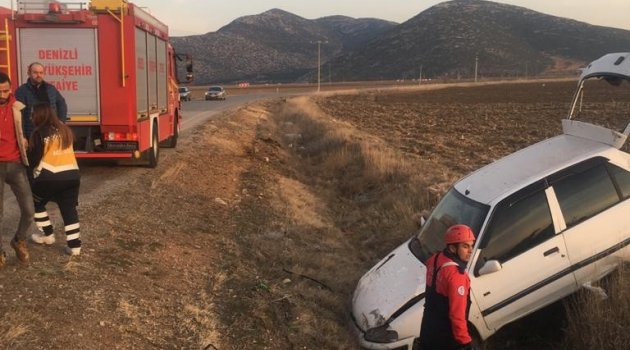 Denizli’de sürücüsünün direksiyon hakimiyetini kaybetmesi sonucu şarampole giren otomobilde bulunan 2 çocuk yaralandı.