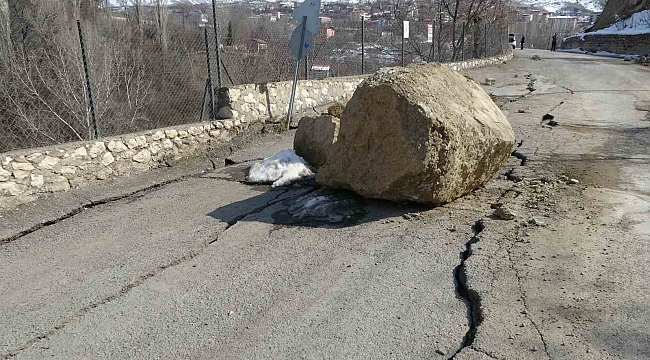 Büyük yıkımın yaşandığı Yeşilyurt ilçesinde ise deprem sonrası oluşan heyelanda yamaçlardan kopan dev kayalar yola düştü, yol ikiye ayrıldı.