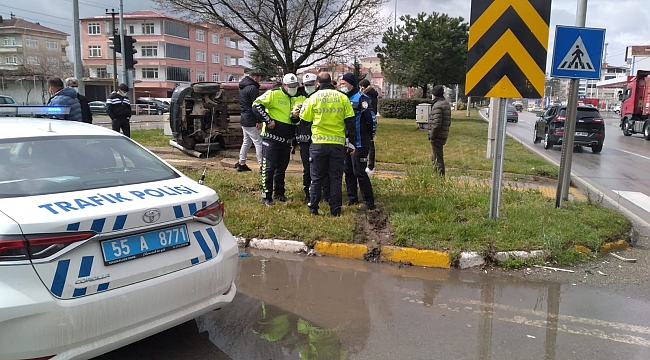 Samsun’un Çarşamba ilçesinde meydana gelen trafik kazasında devrilen araçtan sürücü yara almadan kurtuldu.