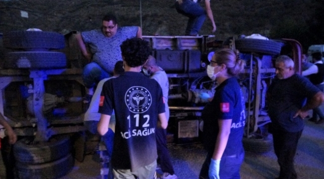 Çarpmanın etkisi ile domates yüklü kamyonet şarampole devrildi. Kamyonette bulunanların yardımına vatandaşlar koştu. Yan yatan araçtan çıkan 3 kişi ile pikap sürücüsü kazayı yara almadan atlattı. Sağlık görevlileri tarafından kontrolden geçirilen şahıslar hastaneye gitmek istemedi. Olay yerinde inceleme yapan trafik polisleri 38 metre fren izi ölçtü. Kadir Y, önüne çıkan kamyonete frene basmasına duramayarak çarptığını kaydetti. Polis ekipleri kazayla ilgili inceleme başlattı.