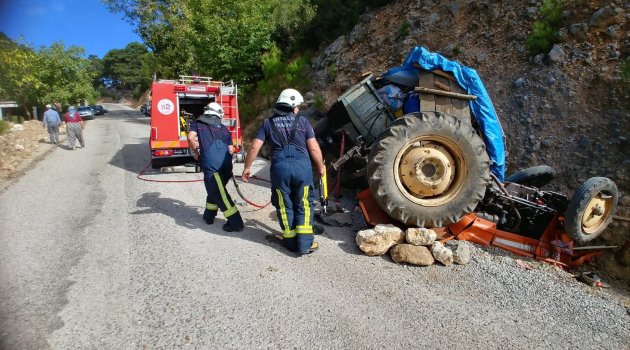 Antalya Büyükşehir Belediyesi kurtarma ekibi tarafından traktörün altından çıkarılan İ.Y., Manavgat Devlet Hastanesine kaldırılarak tedavi altına alındı.
