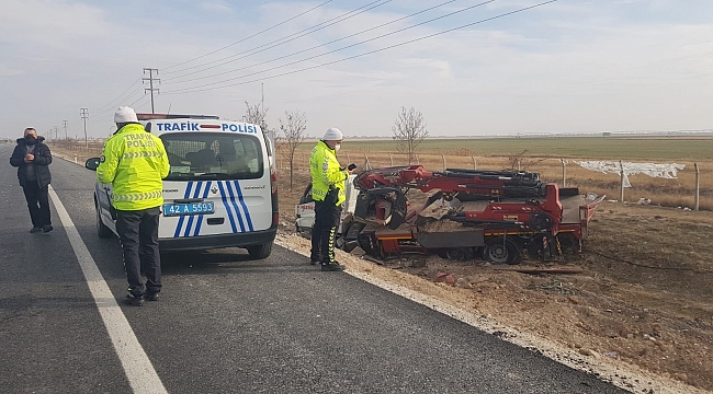 Konya'da vinç sürücüsünün direksiyon hakimiyetini kaybetmesi sonucu meydana gelen kazada takla atan araçtaki sürücü yaralandı.
