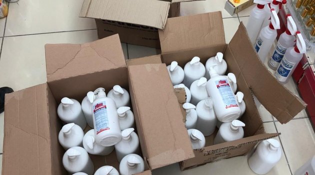 Malatya'da düzenlenen operasyonda izinsiz üretilen 51 litre dezenfektan ve koruyucu maske ele geçirildi.