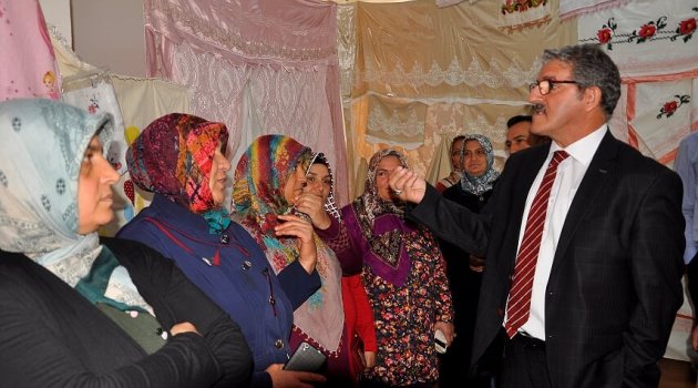 Burada bir konuşma yapan İşkur Müdürü Vahap Toman, “Bizim gayemiz, evlerinde oturan ve her hangi bir iş imkanı olmayan vatandaşlarımızın kendi ev ekonomilerine ve hayatlarına bir katkıda bulunmalarını sağlamaktır. Bu vesileyle mahallemizde 13 kursiyerimize yönelik olarak açtığımız meslek kursumuzdan yapılan tüm el işleri sergileniyor. Hepsinde ellerine, emeklerine sağlık diyorum” şeklinde konuştu.
