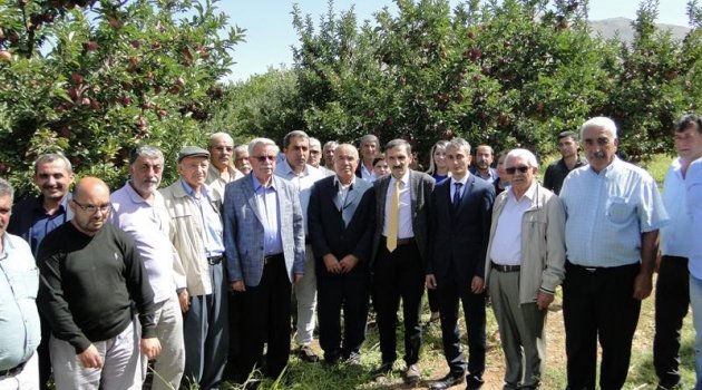 Programda, Ziraat Mühendisi Badin Kılıç tarafından Elmada hasat zamanının belirlenmesi, uygulamalı olarak çiftçilere anlatıldı.