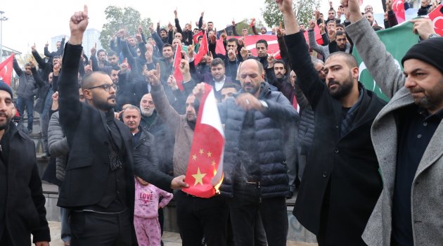 Sloganların da atıldığı basın açıklamasında dua gerçekleştirildi. Son olarak da temsilen Çin bayrağı da yakıldı.