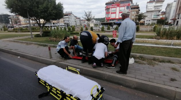 Antalya'nın Manavgat ilçesinde eşine doğum günü sürprizi için çiçek ve pasta götüren motosiklet sürücüsü geçirdiği trafik kazasında yaralandı.