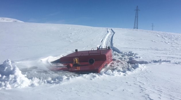 Bingöl’ün Karlıova ilçesinde donan barajda buzun kırılması ile enerji hat kontrol ekibinin bulunduğu paletli araç, suya gömüldü. Araçtan kendi imkanları ile kurtulan 2 kişi jandarmaya sığındı.