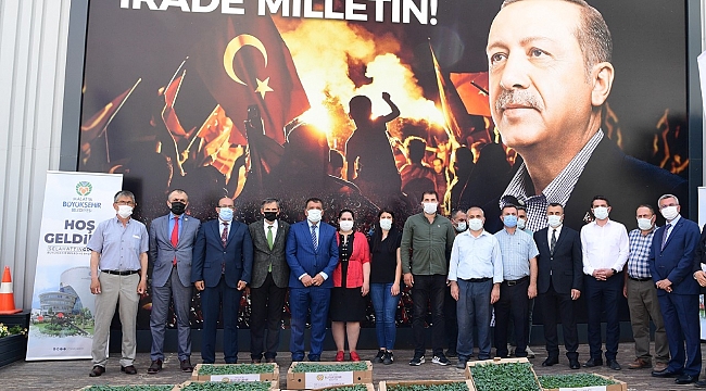 Sebze fidelerinin İlçe Tarım Müdürlüklerine teslim edilmesi için Büyükşehir Belediyesi önünde bir program düzenlendi.