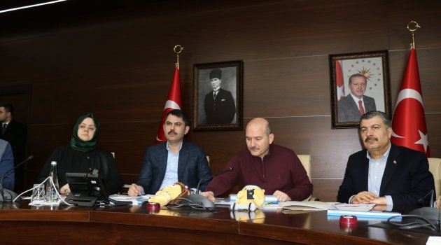 İçişleri Bakanı Soylu, 6.8 büyüklüğünde depremden en çok etkilenen Elazığ ve Malatya illerinde yapılan faaliyetler ve yardımlara ilişkin, Sağlık Bakanı Fahrettin Koca, Çevre Şehircilik Bakanı Murat Kurum ile birlikte kamuoyunu bilgilendirmek amacıyla ortak basın toplantısı düzenledi.