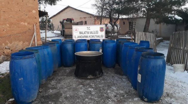 Malatya'da kaçak içki imalatı yapılan bir eve baskın yapan jandarma ekipleri, piyasaya sürülmek istenen 4 ton kaçak alkollü içki ele geçirdi.