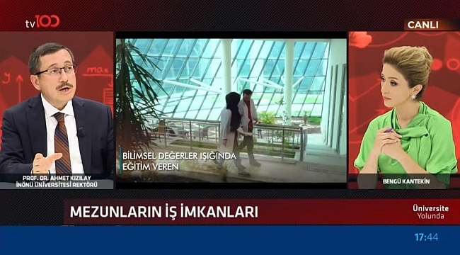 İnönü Üniversitesi Rektörü Prof. Dr. Ahmet Kızılay, ulusal bir televizyon kanalında Bengü Kantekin’in sunduğu “Üniversite Yolunda” programının canlı yayın konuğu oldu. Programda İnönü Üniversitesi'ni anlatan Rektör Prof. Dr. Ahmet Kızılay, 2021 yılında üniversite tercihi yapacak öğrenciler için tavsiyelerde bulundu.