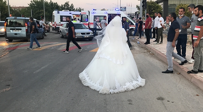 O sırada damat ile düğün salonuna giden gelin, kaza yapanın teyzesi olduğunu gördü. Gelin aracından inen gelin, koşarak ambulansa gitti.
