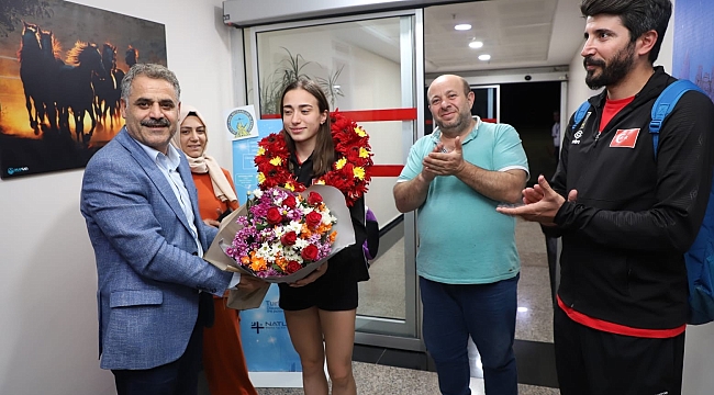 Modern Pentatlon U19 Dünya Şampiyonası'nda üçüncülük başarısını elde eden Malatyalı sporcu Belemir Almira Dede, Malatya Havalimanı VİP bölümünde çiçekle karşılandı.