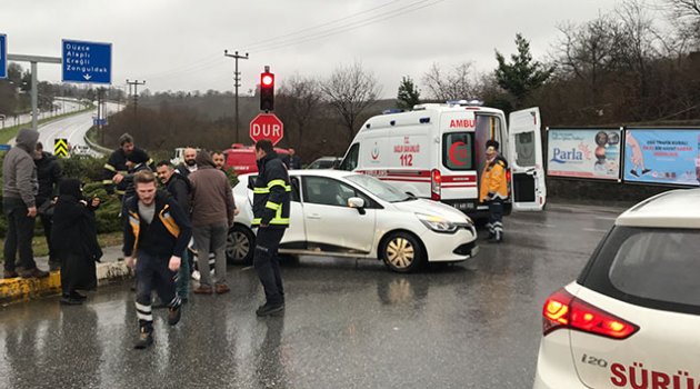 Edinilen bilgiye göre 81 EV 734 plakalı sürücüsü belirlenemeyen Sağlık bakanlığına ait ambulans, Düzce istikametinden Akçakoca istikametine seyir halinde ilerlediği esnada Barboros kavşağından çevre yoluna çıkan İrfan Sarı idaresindeki 34 FH 8048 plakalı otomobille çarpıştı. Meydana gelen trafik kazasında otomobil sürücüsü İrfan Sarı, ağır yaralandı. Yaralı sürücü, 112 Acil Yardım ekipleri tarafından Akçakoca Devlet Hastanesine kaldırılarak tedavi altına alındı. Olayla ilgili polis ekipleri inceleme başlattı.