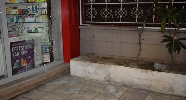 Edinilen bilgilere göre,Atabey sokak içerisinde bulunan bir eczanenin camını taşla kırarak işyerine girmeye çalışan 2 kişiyi gören çevredeki vatandaşlar durumu polis ekiplerine bildirdi.İhbar üzerine olay yerine kısa sürede intikal eden polis ekipleri 2 şüpheliyi kıskıvrak yakalanarak gözaltına aldı.