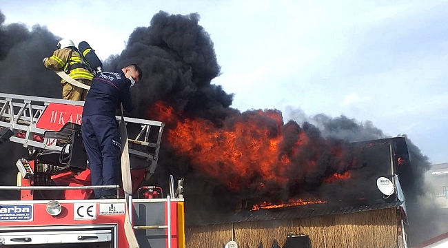 Edinilen bilgiye göre, Altınoluk Çayağzı Caddesi'nde sahilde içerisinde bir kulüp, bir kafe ve ofisin bulunduğu yerde yangın çıktı. Kısa sürede büyüyen yangında çevre siyah dumanla kaplanırken, yangın büyük paniğe neden oldu.