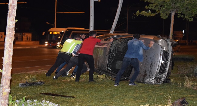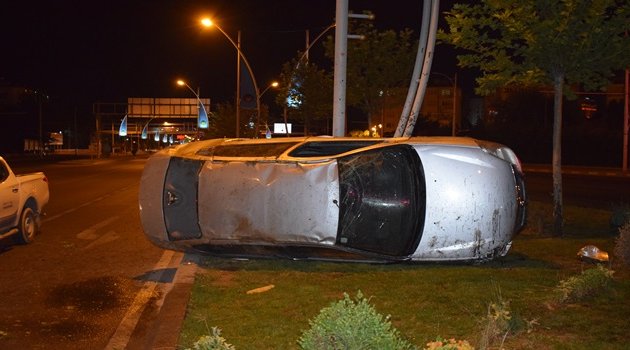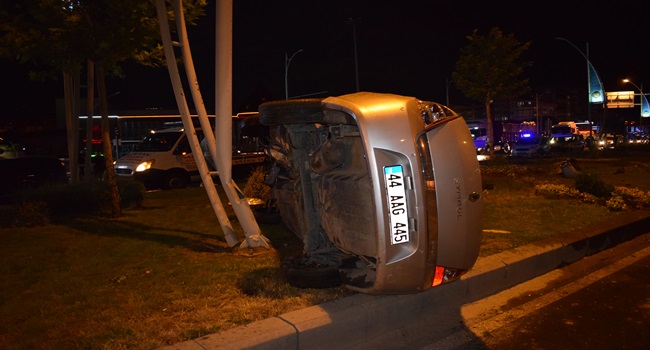 HASAN ERYILMAZ/ Malatya'da ehliyetsiz sürücünün kullandığı otomobil refüje çarptıktan sonra 15 metre savruldu.Kaza da araç sürücüsü yaralandı.