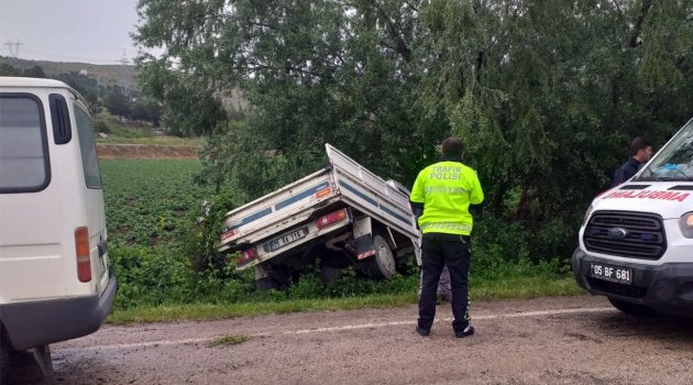 Amasya’da ehliyetsiz sürücünün kullandığı kamyonet yol kenarına devrildi. Kazada 2 kişi yaralandı.