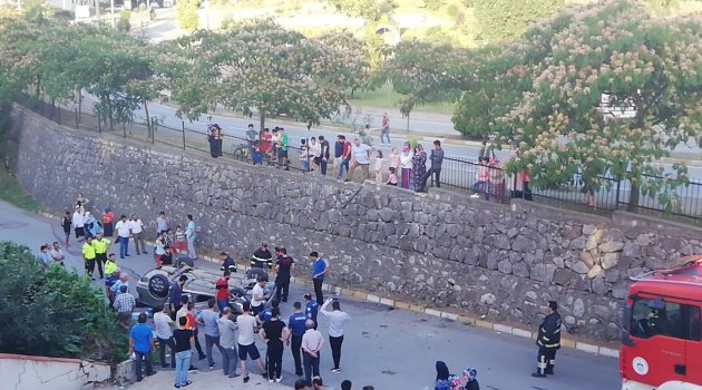 Kocaeli'nin Gölcük ilçesinde gezintiye çıkan gençlerin içinde bulunduğu otomobil 2 metrelik duvardan zemine düşerek ters döndü. Kazada 2 kişi yaralandı.