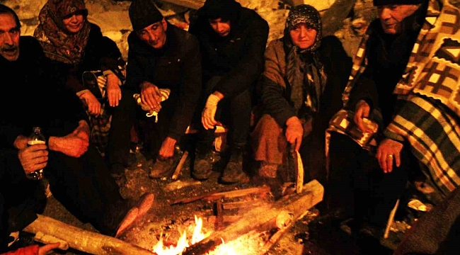 Eksi 9 derecede enkaz bölgesinde ateş başında bekliyorlar