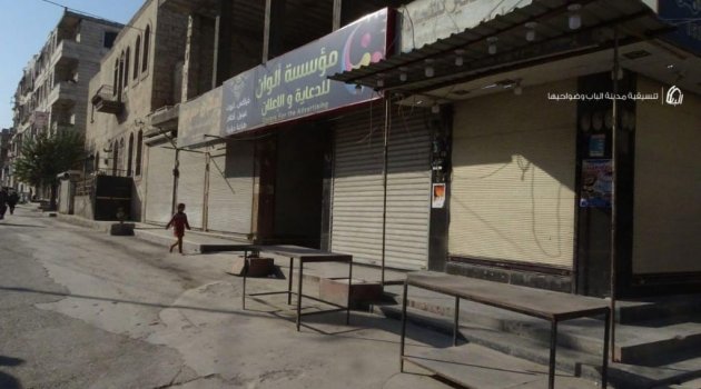 Suriye’nin El Bab ilçesinde 18 sivilin hayatının kaybetmesine yol açan terör saldırısının failine idam cezası verilmesini isteyen halk, iş yerlerine gitmeyip sokağa çıkmadı.