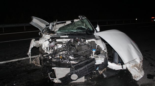 Gaziantep'te çevre yolunda emniyet şeridinde bekleyen kamyona otomobil çarptı.