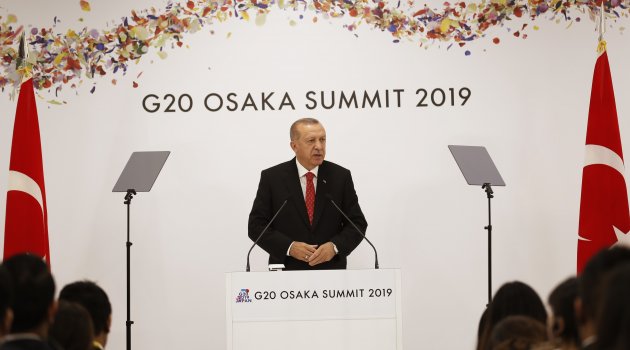 Cumhurbaşkanı Recep Tayyip Erdoğan, G20 Liderler Zirvesi'ne ilişkin INTEX Osaka Fuar Merkezi'nde düzenlenen basın toplantısında konuştu. Toplantının başında ev sahibi Japon makamlarına teşekkür eden Erdoğan, gündeme dair önemli açıklamalarda bulundu. Konuşmasında mülteci sorununa değinen Erdoğan, Türkiye'nin 3.6 milyon Suriyeli'ye ev sahipliği yaptığını hatırlattı. İnsan hakları konusunda batılı devletlerin insanlık sınavından geçemediğini belirten Erdoğan, Türkiye'nin mültecilere yardımlarını sürdürebilmesi için uluslararası toplumların da elini taşın altına koyması gerektiğini belirtti.