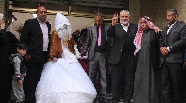 İsrail'in bombalı saldırıları sonucu evi yıkılan Filistinli gelin Shayma al-Hiwiti’ye Hamas lideri İsmail Haniye evini açtı. Baba evi yıkılan gelini damat Haniye'nin evinden aldı. Hamas lideri İsmail Haniye, “İsrail’in terörüne rağmen biz biriz” diyerek evini açtı.