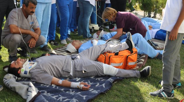 İNOSAR Ekibi Başkanı ve Sivil Savunma Uzmanı Ercan Yetkiner ise hastane afet planı gereğince yıl içerisinde zaman zaman eğitimler yaptırdıklarını belirterek “Bugün burada bu yaptığımız eğitimler gereği personelimiz ne kadar hazırlıklı bir deprem ve yangın tahliye tatbikatı planladık. Bir senaryo uyguladık senaryo gereği bütün olumsuz durumları ortaya koymaya çalışacağız. Amacımız personelimizin olası bir durumda nasıl hareket edeceği nasıl hayatta kalacağı, binayı nasıl terk edeceği ve aynı zamanda olası durumlarda biz hastanemizi en kısa sürede nasıl çalışır hale getirebileceğimizin denemesini yapacağız” diye konuştu.
