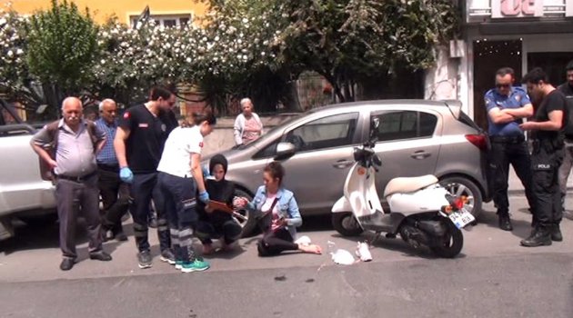 Fatih'te bir araç tarafından sıkıştırılan kadın motosikletli, yere düşerek yaralandı