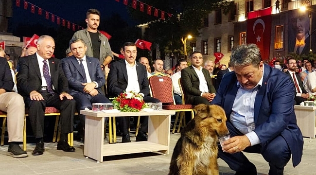 Malatya'da maskot haline gelen, daha çok valilik çevresinde ve İnönü Caddesi'ndeki etkinliklerde kendini gösteren, namı diğer protokol köpeği (Alex), Milliyetçi Hareket Partisi (MHP) MYK üyesi ve Malatya Milletvekili Mehmet Fendoğlu'nun elinden su içti.