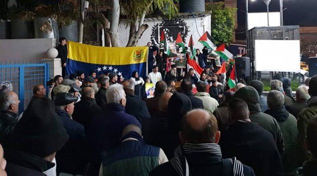 Batı Şeria'da Beytüllahim'deki el-Dhişa kampında toplanan Filistinliler, Venezuela Devlet Başkanı Nicolas Maduro'ya destek verdi. Venezuela bayrağı açan göstericiler, Maduro'ya karşı desteklerini dile getirerek, ABD karşıtı dövizler taşıyıp sloganlar attı. Filistin Dışişleri Bakanlığı daha önce yaptığı açıklamada, Venezuela'da yaşanan son gelişmelerin ardından Maduro'ya destek vermişti.