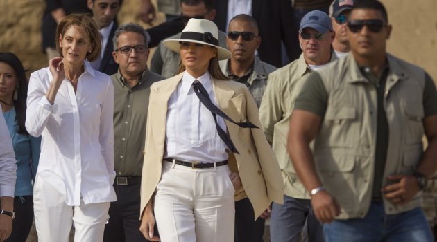 ABD Başkanı Donald Trump’ın eşi Melania Trump çocuklar için oluşturduğu “Be Best” isimli kampanyası kapsamında düzenlediği Afrika turunun son durağı Mısır’a da gelerek ziyaretlerini tamamladı. First Lady’nin Mısır gezisinde giydiği kıyafetler ise sosyal medyada gündem oluşturdu. Bazı sosyal medya kullanıcıları Melania Trump kıyafetlerini ‘Şık Maceraperest’ olarak değerlendirdi. Kullanıcılar Melania Trump’ın kombini ile "Indiana Jones film serisinden fırlamış gibi durduğunu" söyledi. Bazı kullanıcılar ise First Lady’yi 1920’li yıllarda arkeologların giydiği kıyafetleri kopya etmekle suçladı.