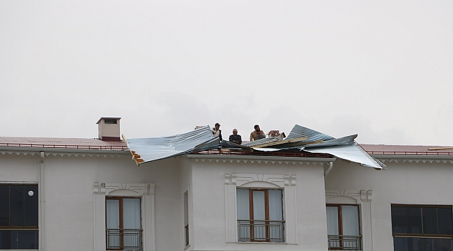 Sivas'ta sabah saatlerinde etkili olan kuvvetli fırtına hayatı olumsuz etkiledi. Saatte 90 kilometre hıza ulaşan rüzgarın etkisiyle Fatih Mahallesi Merakum Caddesi üzerinde bulunan 6 katlı apartmanın çatısının bir kısmı uçtu.
